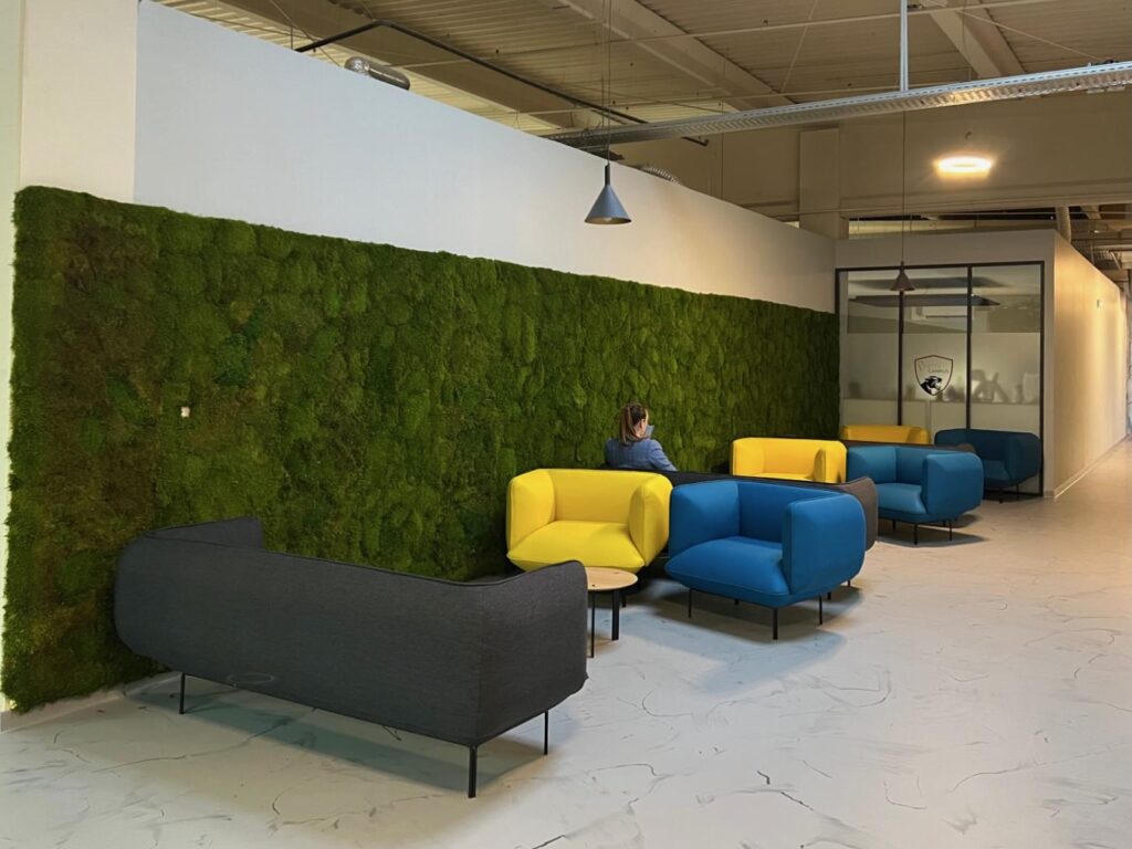 La nature est figée sur un panneau pour absorber les nuisances sonores et laisser place à une atmosphère acoustique agréable. Nos solutions végétalisées sont produites en Lorraine grâce à des matériaux locaux (co-construction avec l’ONF).